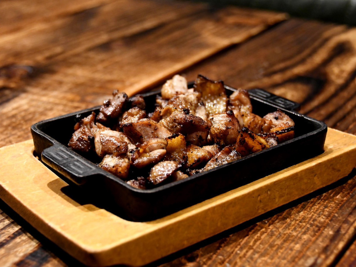 宇部の「肉+酒 ひょっとこ」が提供する「国産親鶏のモモ焼き」