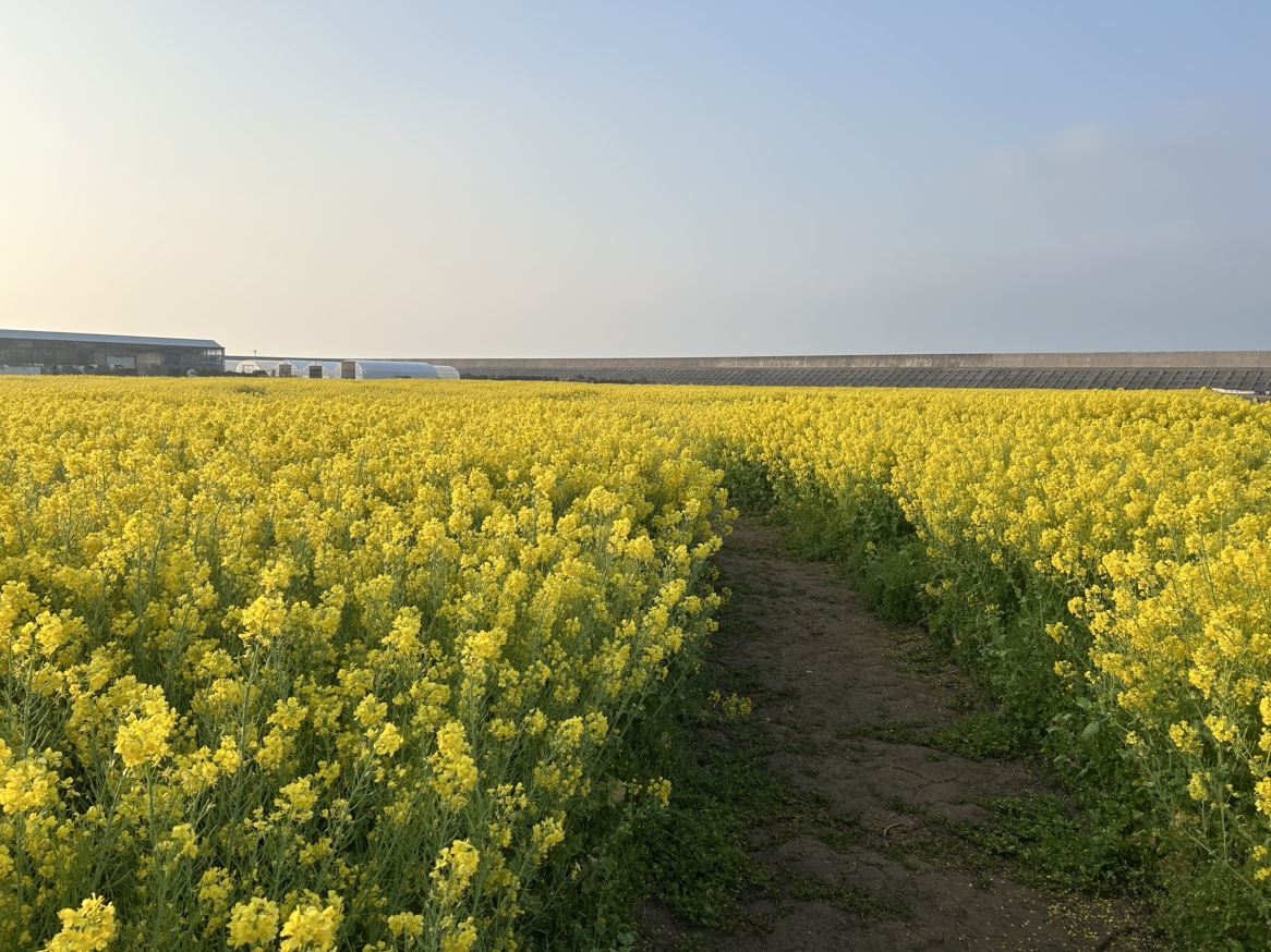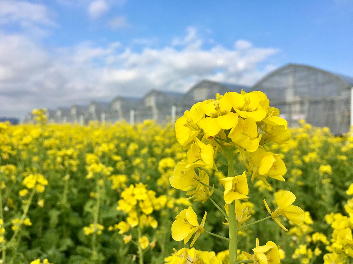山陽小野田の農場「花の海」で開花が始まった菜の花畑