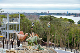 宇部のレジャー施設「COCOLAND(ココランド)」(宇部市上宇部、TEL 0836-33-6116)敷地内に3月1日、体験型施設「恐竜の森アドベンチャー SORACO(ソラコ)」がオープンした。