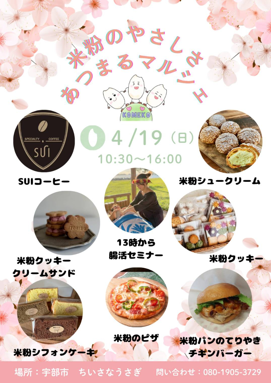 宇部のイベント「米粉のやさしさあつまるマルシェ」チラシ