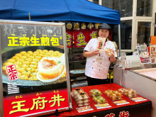 サンフェスタ広場では、「王府井酒家」(神奈川)の「正宗生煎包」(1個パック入り、1,350円)、「有職たい菓子本舗・天音」(東京)の「たい菓子つぶあん」(300円)、「日曜市のいも天」(高知)の「いも天」(100グラム、390円)、「鮨処森山」(北海道)の「はなやぎ海峡弁当」(1折、2,592円)など各地の総菜や加工品・弁当などが並ぶ。