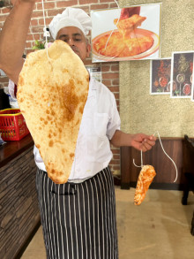 パンの代わりにナンを使用して行う「ナン食い競争」(参加料100円)は、大人も参加可能。ナンはインド料理レストラン「シャプラ」(日の出1)が用意し、11時30分から1時間おきに計3回実施予定。