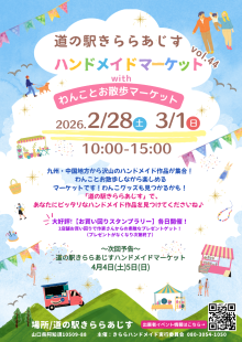 マルシェイベント「道の駅きららあじすハンドメイドマーケット with わんことお散歩マーケット」が2月28日・3月1日の2日間、道の駅「きららあじす」(山口市阿知須)で開かれる。