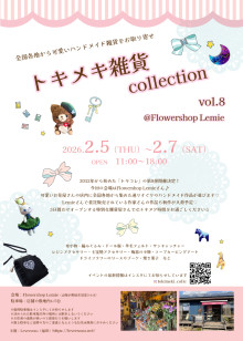 ハンドメイド作品の販売イベント「トキメキ雑貨collection vol.8」が2月5日~7日の3日間、山陽小野田の花屋「Flowershop Lemie(ルミエ)」(山陽小野田市須恵3)で開催される。