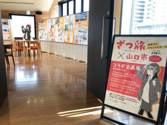 人気漫画とのコラボイベント「ざつ旅×山口市 コラボ企画展」が1月6日、湯田温泉観光回遊拠点施設「狐の足あと」(山口市湯田温泉2)で始まった。