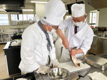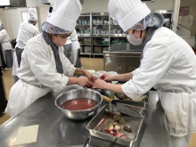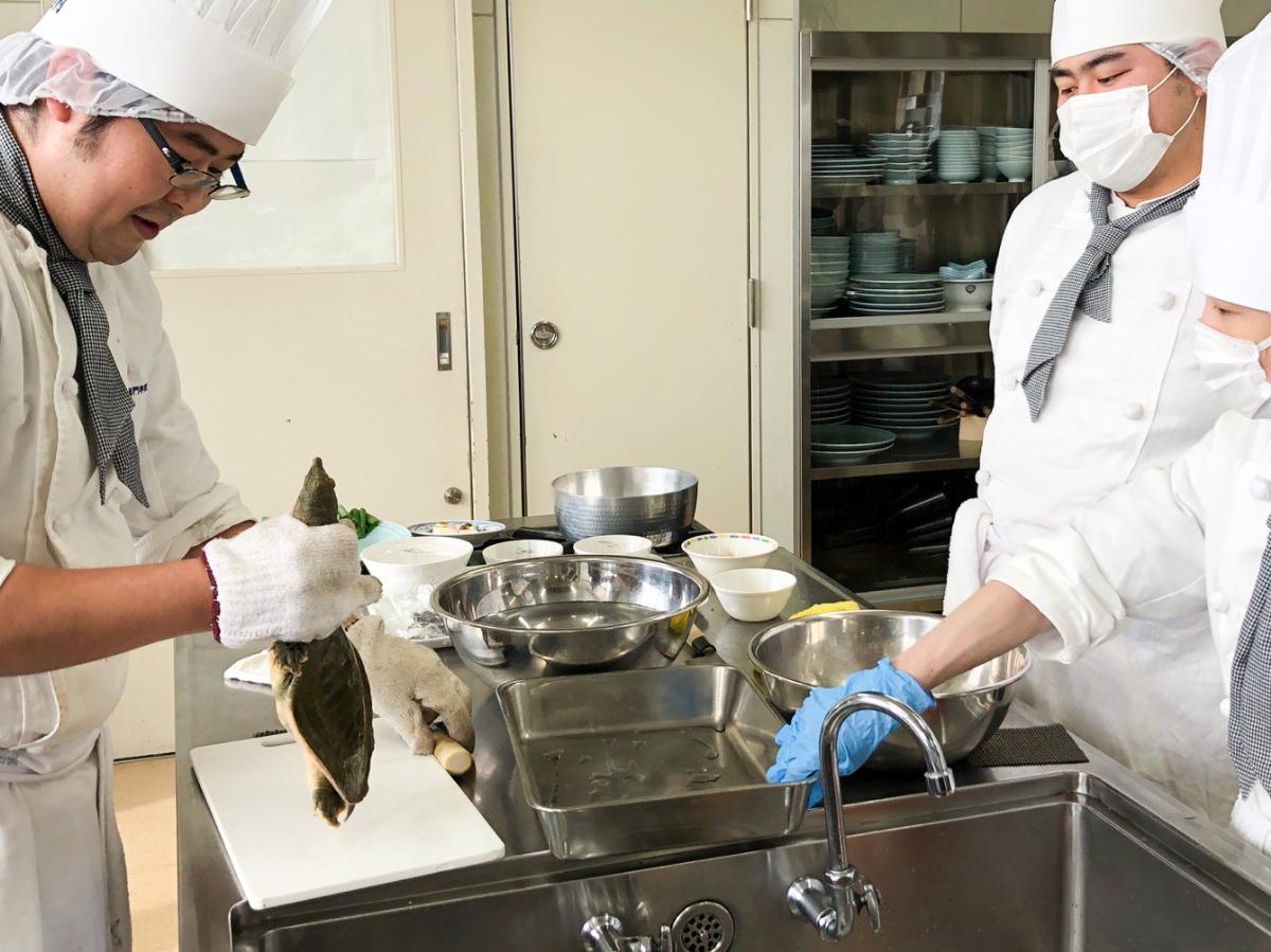 JR新山口駅近くの「YIC調理製菓専門学校」(山口市小郡黄金町)で2月16日、「すっぽん」を用いた調理実習が行われた。