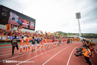サッカーJ3のレノファ山口FCが4月21日、「おのサンサッカーパーク」(山陽小野田市立サッカー交流公園)で練習を公開した。