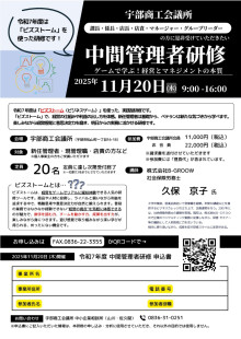 ゲームでビジネスを学ぶ「中間管理者研修 ~ゲームで学ぶ!経営とマネジメントの本質~」が11月20日、「宇部商工会議所」(宇部市松山町1)で開かれる。