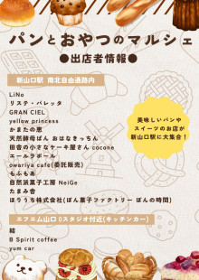 新山口駅の南北自由通路で開催される「パンとおやつのマルシェ」チラシ表