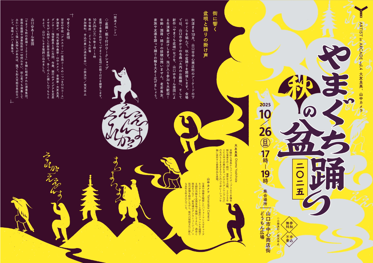 アートプログラム「ARTIST in ARCADE vol.4 大友良英、山中カメラ」が実施する企画「やまぐち秋の盆踊り2025」が10月26日、山口市中心商店街の「どうもん広場」(山口市道場門前2)で開催される。