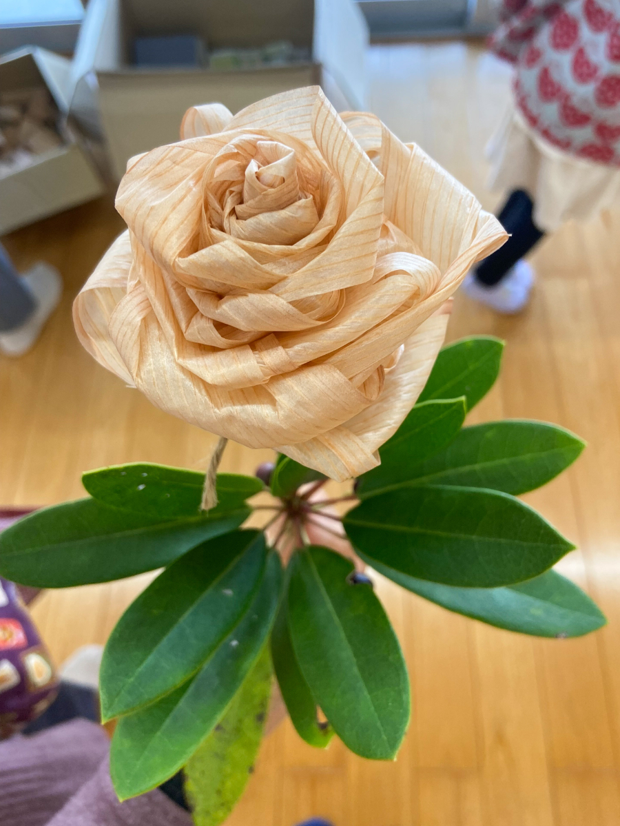 写真は昨年の「鉋(かんな)で華づくり」で作られたバラの花(写真提供=楠こもれびの郷)