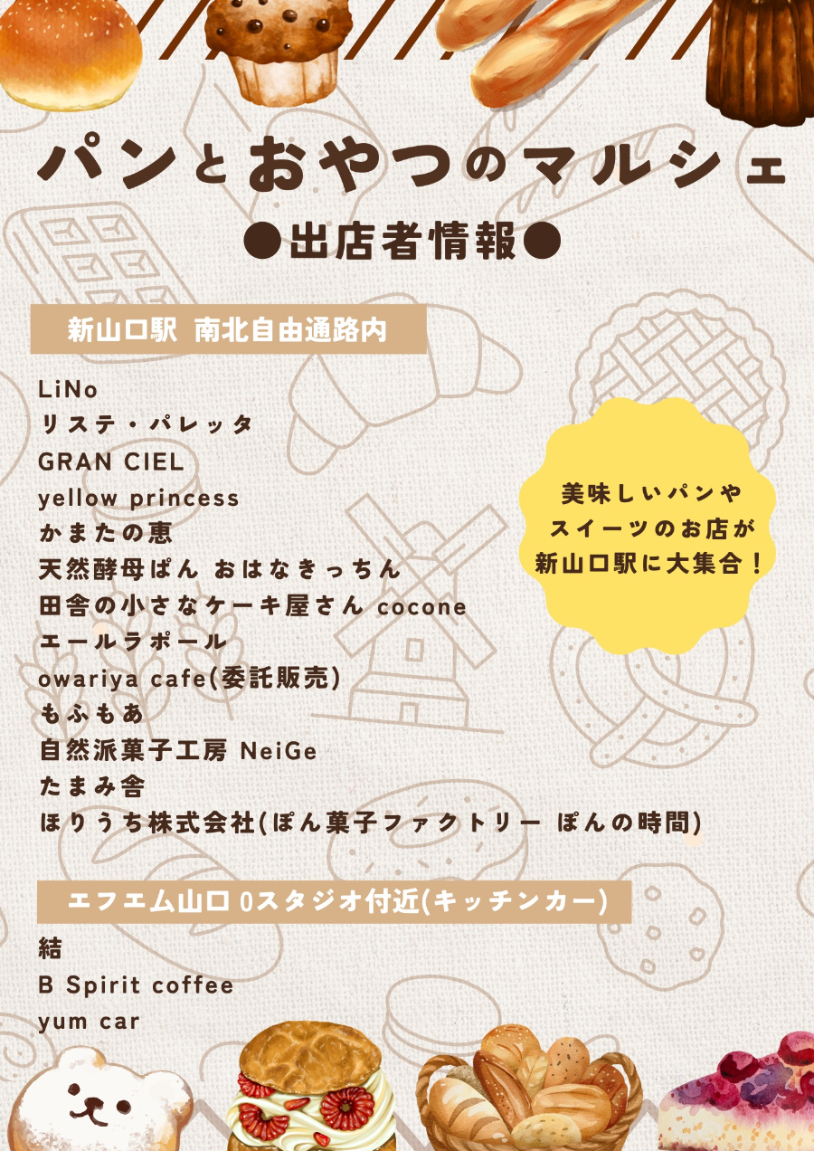 新山口駅の南北自由通路で開催される「パンとおやつのマルシェ」チラシ裏