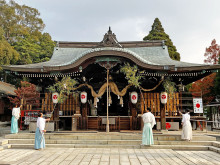 同神社では、今月6日に上宇部中学校の生徒たちによる「特大絵馬」の除幕式を行ったほか、同7日には「しめ縄保存会」が鳥居や社務所など境内のしめ縄の掛け替えを行った