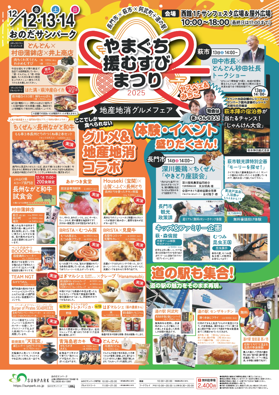 おのだサンパークで始まった「やまぐち援むすびまつり2025」チラシ裏面