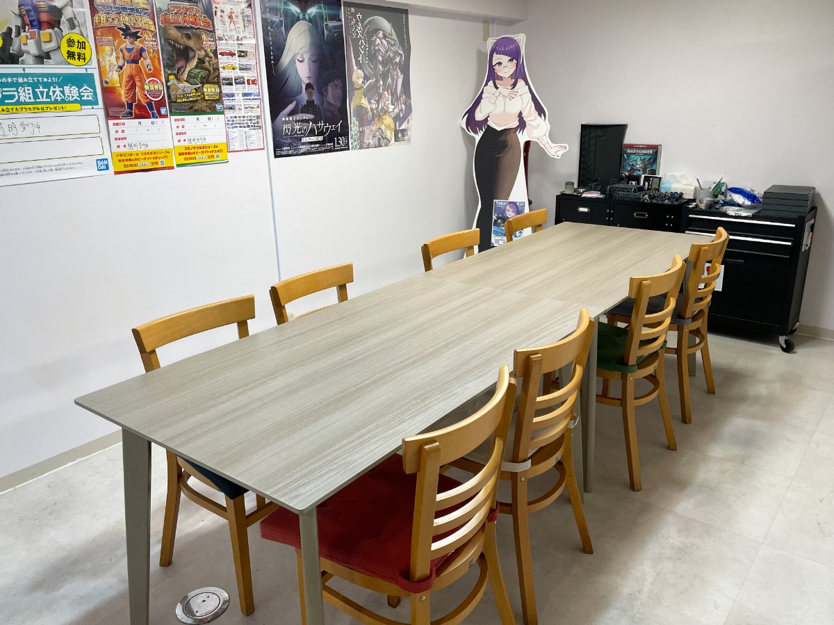 山口のプラモデル専門店「オキモケイ」店内の制作スペース