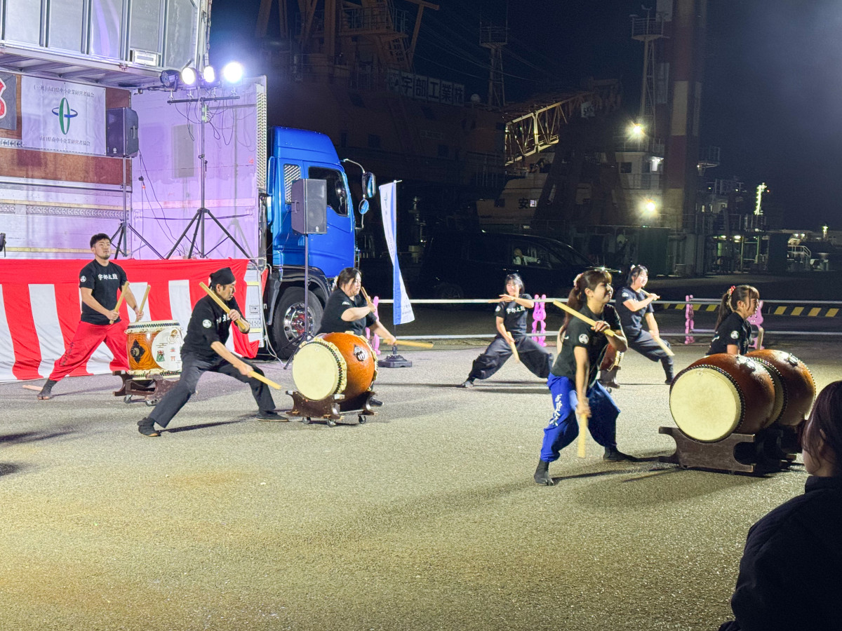 宇部の「カウントダウン花火 in UBE」宇部太鼓パフォーマンスの様子