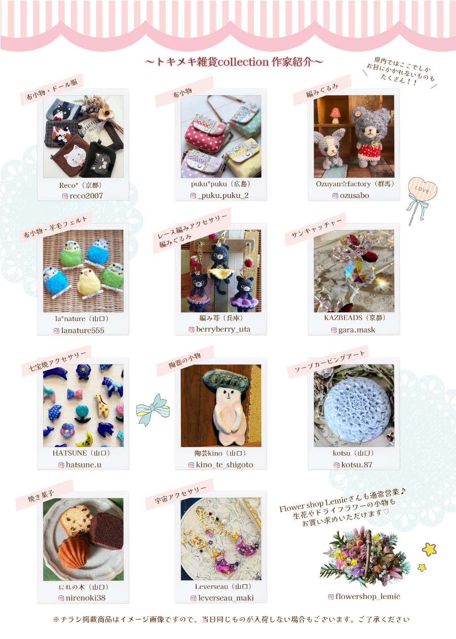 山陽小野田の「トキメキ雑貨collection」のチラシ裏面