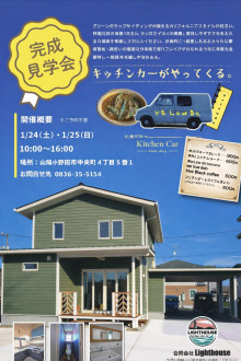 山陽小野田市中央町で1月24日・25日、合同会社ライトハウス(宇部市小松原町2、TEL 0836-35-5154)による「住宅完成見学会」が開催される。
