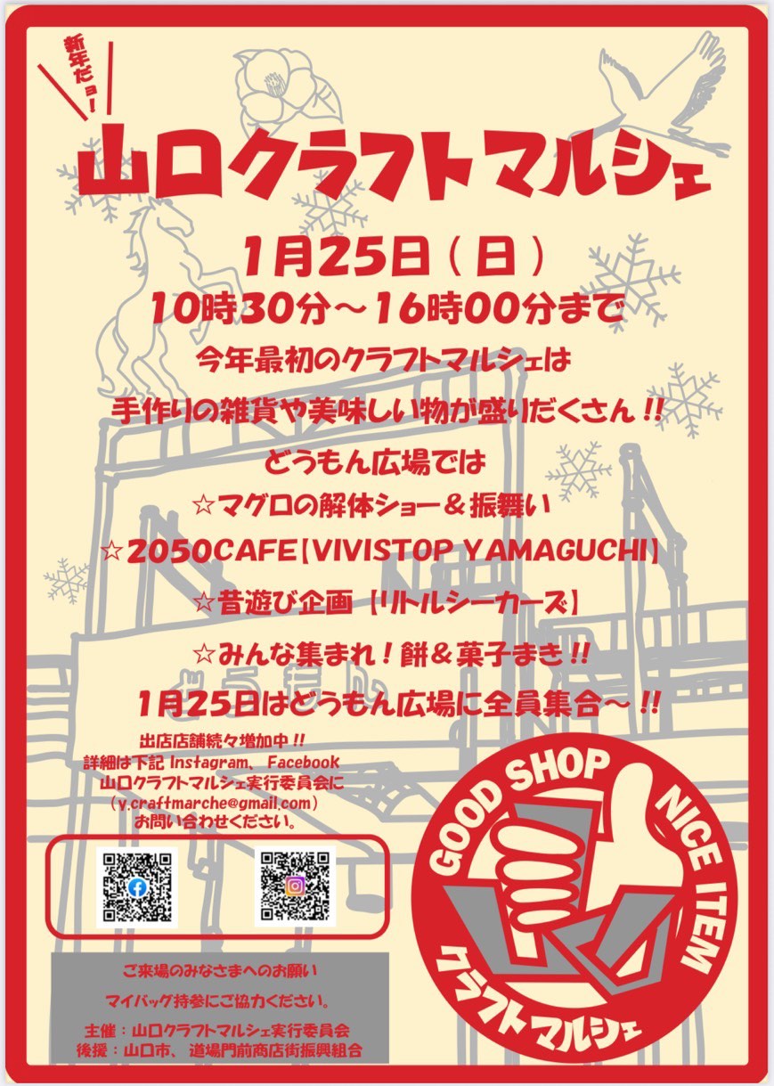 マルシェイベント「山ロクラフトマルシェ」が1月25日、山口市の道場門前商店街一帯で開かれる。