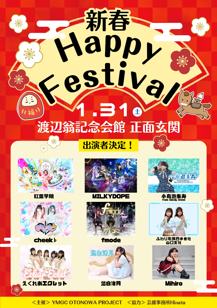 イベント「新春!ハッピーフェスティバル」が1月31日、宇部の「渡辺翁記念会館」(宇部市朝日町)で開かれる。