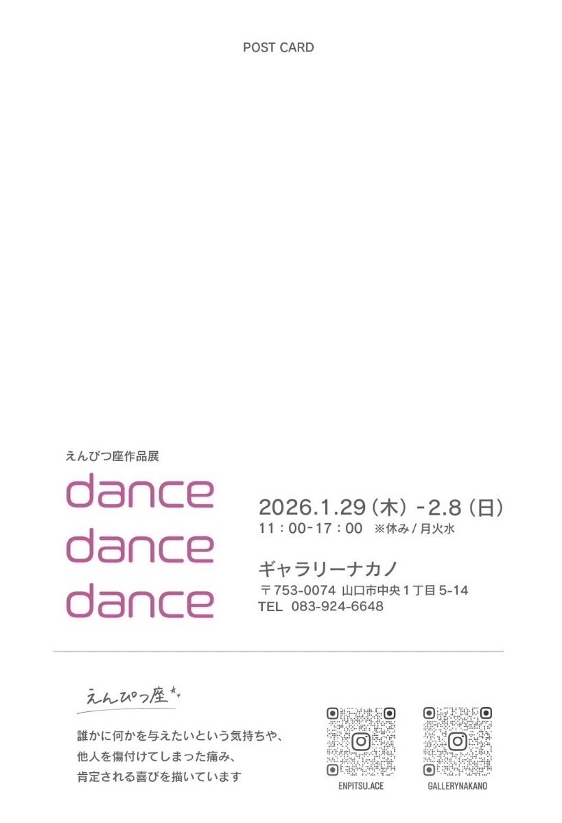 山口で開催中の個展「dance dance dance」フライヤーの裏面