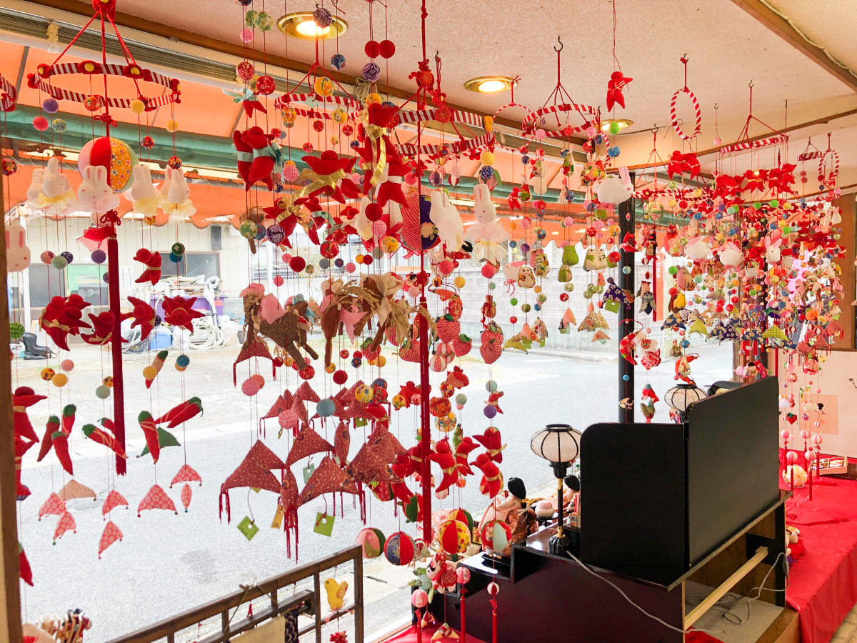 ちりめん細工「ひなもん」を展示する「阿知須のひなもんまつり」が2月5日、山口・阿知須地区で始まった。