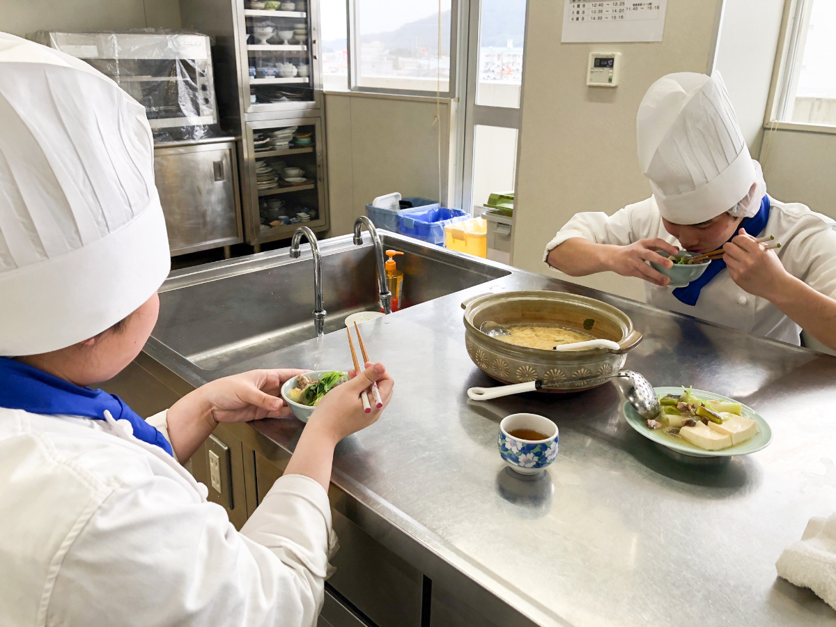 授業に参加した村田倖乃さんは「捌くときは苦戦したが、食べてみるとすごくおいしい。出汁(だし)も出て食感もしっかりしていて、魚などに特有の生臭さもなく食べやすい」と話した