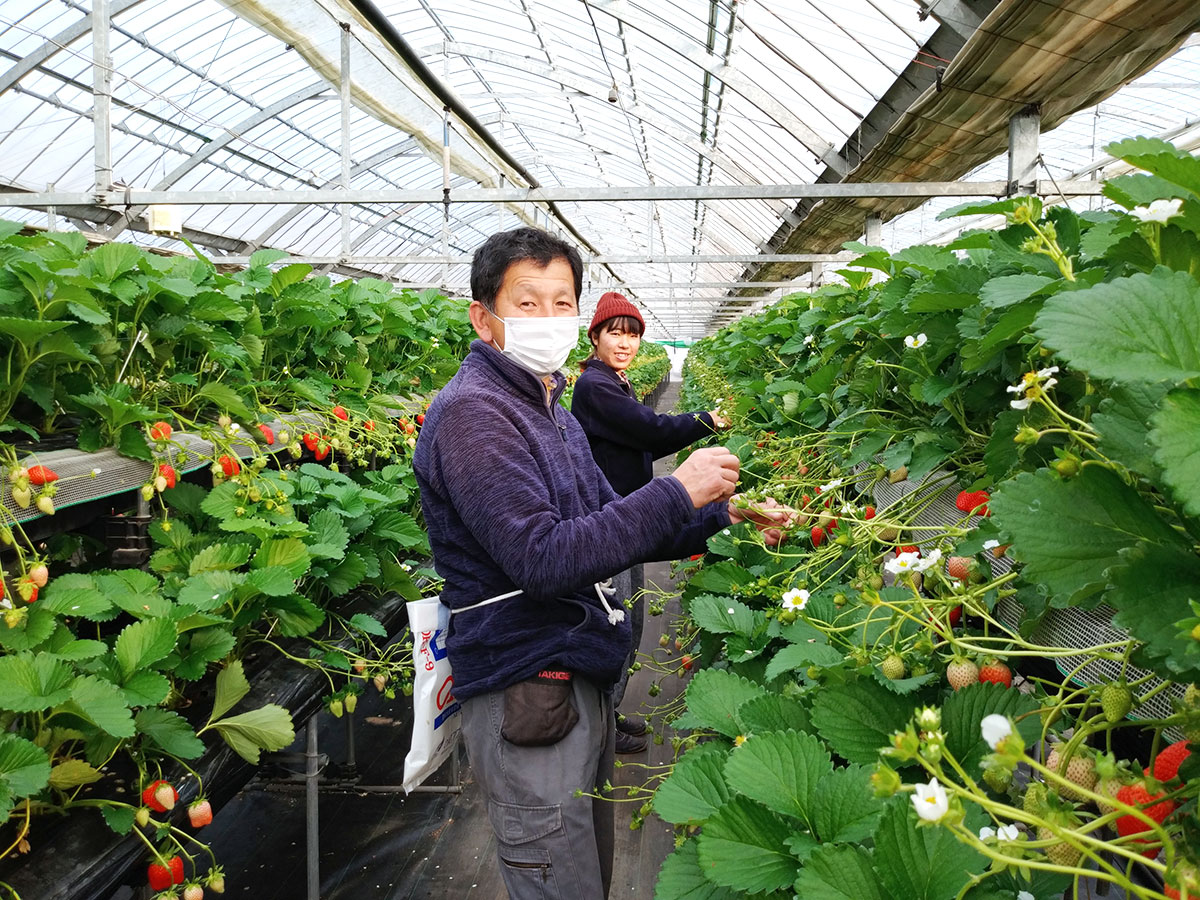 昨年のイチゴ狩りは3万5000人以上が来園し、今年も同様を見込む。サッカーコート3面分のビニールハウスで栽培する品種は、「かおりの」「四星」「すず」と、「実がしっかりしていて食べ応えがある」(金子さん)という新品種「堅しろう」の4種類。時間無制限の食べ放題で提供する。「週末は5月いっぱいまで団体予約で埋まってきているが、平日はまだ空いている日が多いので事前に予約してもらえたら」と金子さん(写真提供=季節体験農場 花の海)