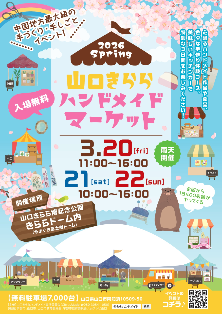 「山口きららハンドメイドマーケット2026春」チラシ表