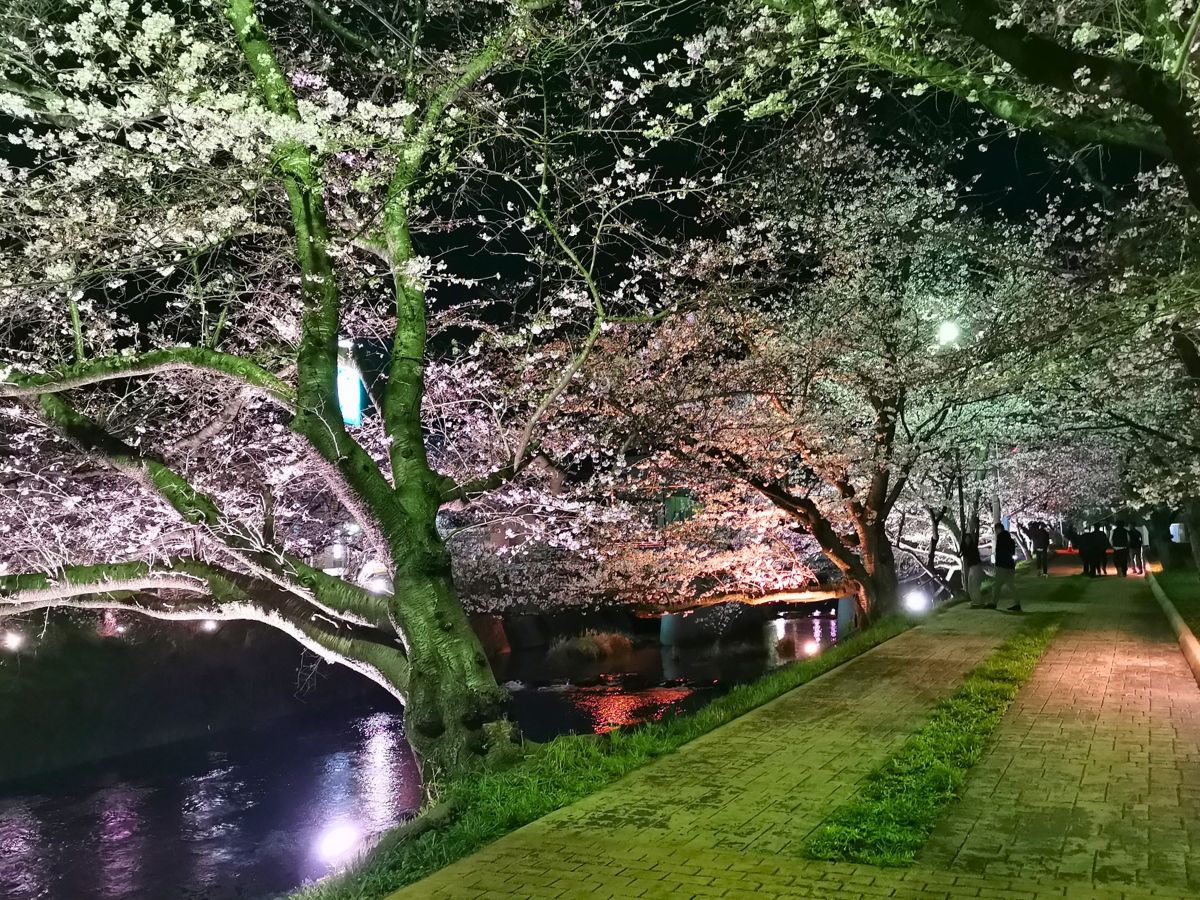 美祢「みね桜まつり」夜空に浮かび上がる「桜のトンネル」