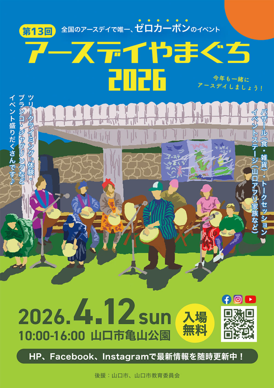 環境フェスティバル「アースデイやまぐち2026」が4月12日、亀山公園(山口市亀山町)で開催される。