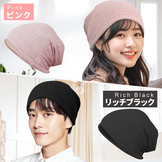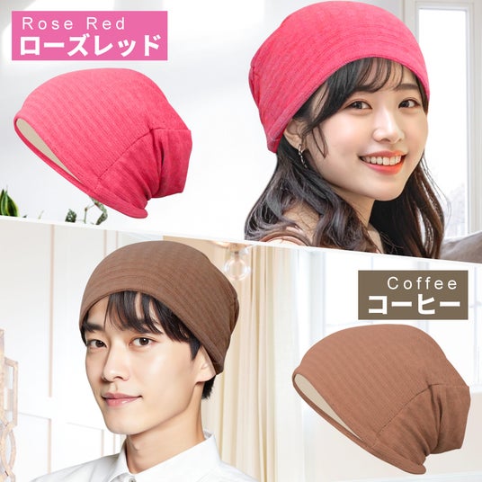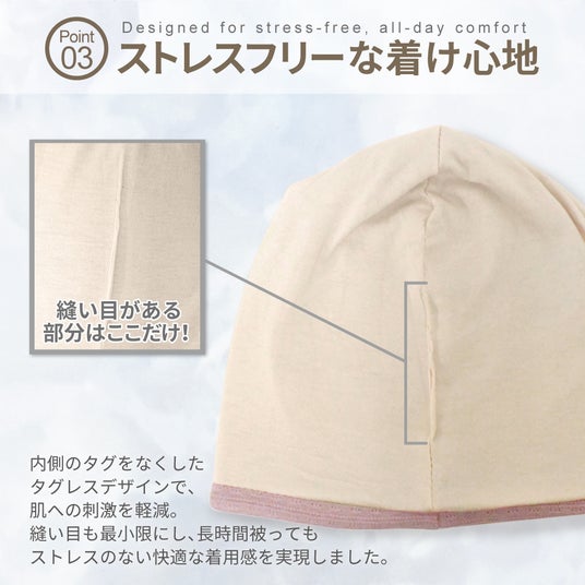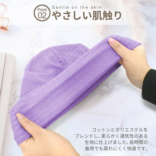 肌あたりのやわらかい生地が頭をふんわり包み込み、