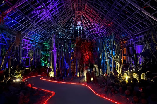 今年のテーマは「ナイトボタニカ~月が咲く夜~」。新演出の「光る蝶」が昨年話題となった3.5mの月のオブジェまでを導き、シンボルツリーにちなんだ各国の音楽の演出とあわせて、来場者は世界の植物を巡る旅人の気分を味わえます。館内は、植物の美しさを引き立てることにこだわったライトアップで、幻想的な雰囲気に包まれています。