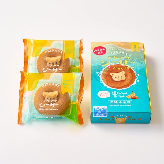 沖縄でしか買えないお菓子「プカプカシーサー」は、県内の主要なお土産ショップにて販売中。