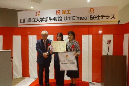 UniLife(ユニライフ)のブランドで全国の学生マンションの企画開発・仲介斡旋・運営管理までをトータルで行う株式会社ジェイ・エス・ビー(本社:京都府京都市、代表取締役社長:森 高広 以下、当社)は、公立大学法人山口県立大学(以下、山口県立大学)の南キャンパス(山口市桜畠)構内にて、食事付き学生マンション「山口県立大学学生会館 Uni E'meal 桜杜テラス(ユニエミールサクラモリテラス)」の運営を4月1日より開始しました。開設に先立ち山口県立大学と共に3月6日に開催した竣工式では、建物名称の学内公募で選ばれた受賞者への表彰も執り行われました。