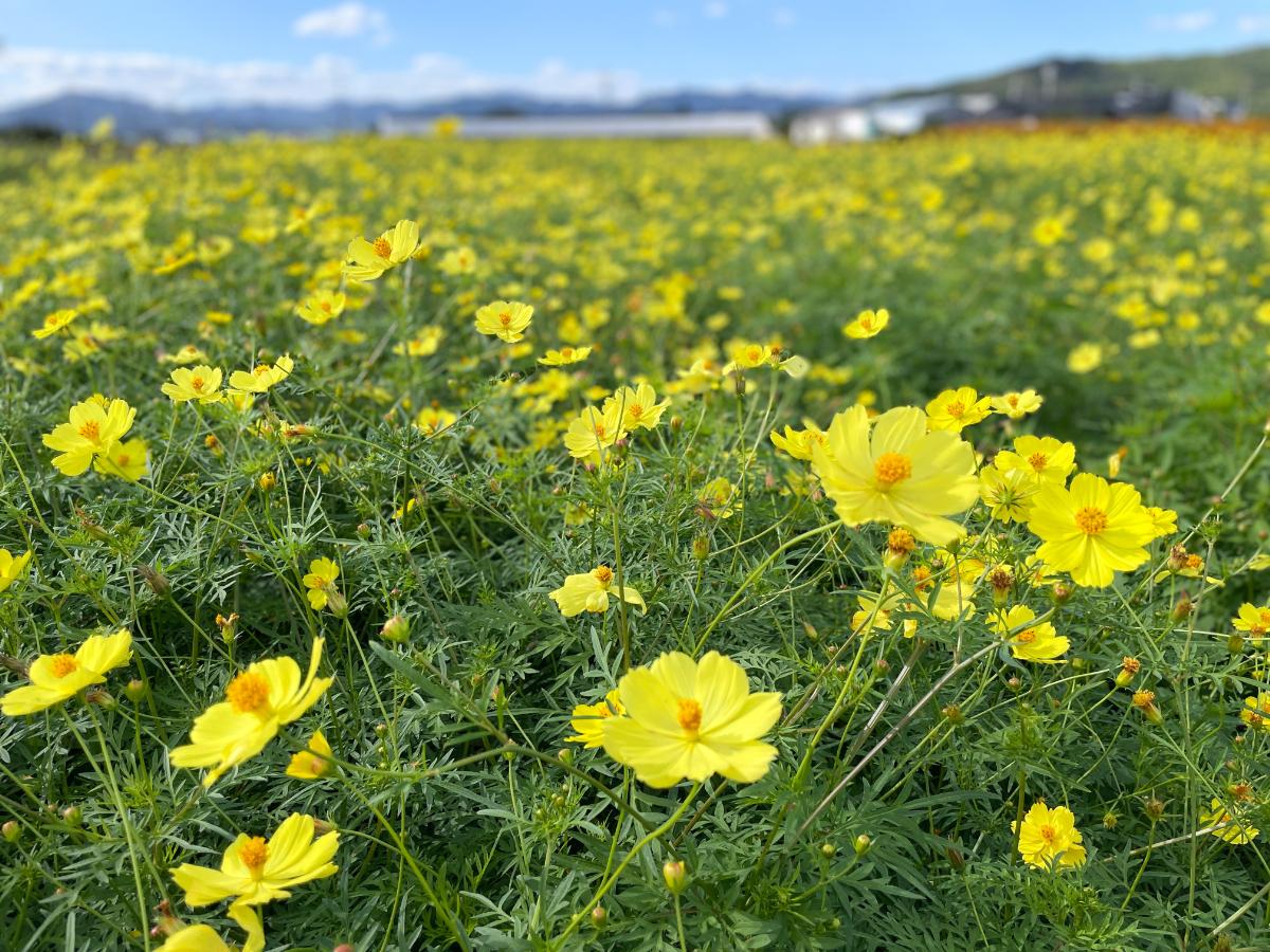 山陽小野田市埴生の総合園芸農場「花の海」(TEL 0836-79-0130)で10月29日、コスモスが満開の見頃を迎えている。