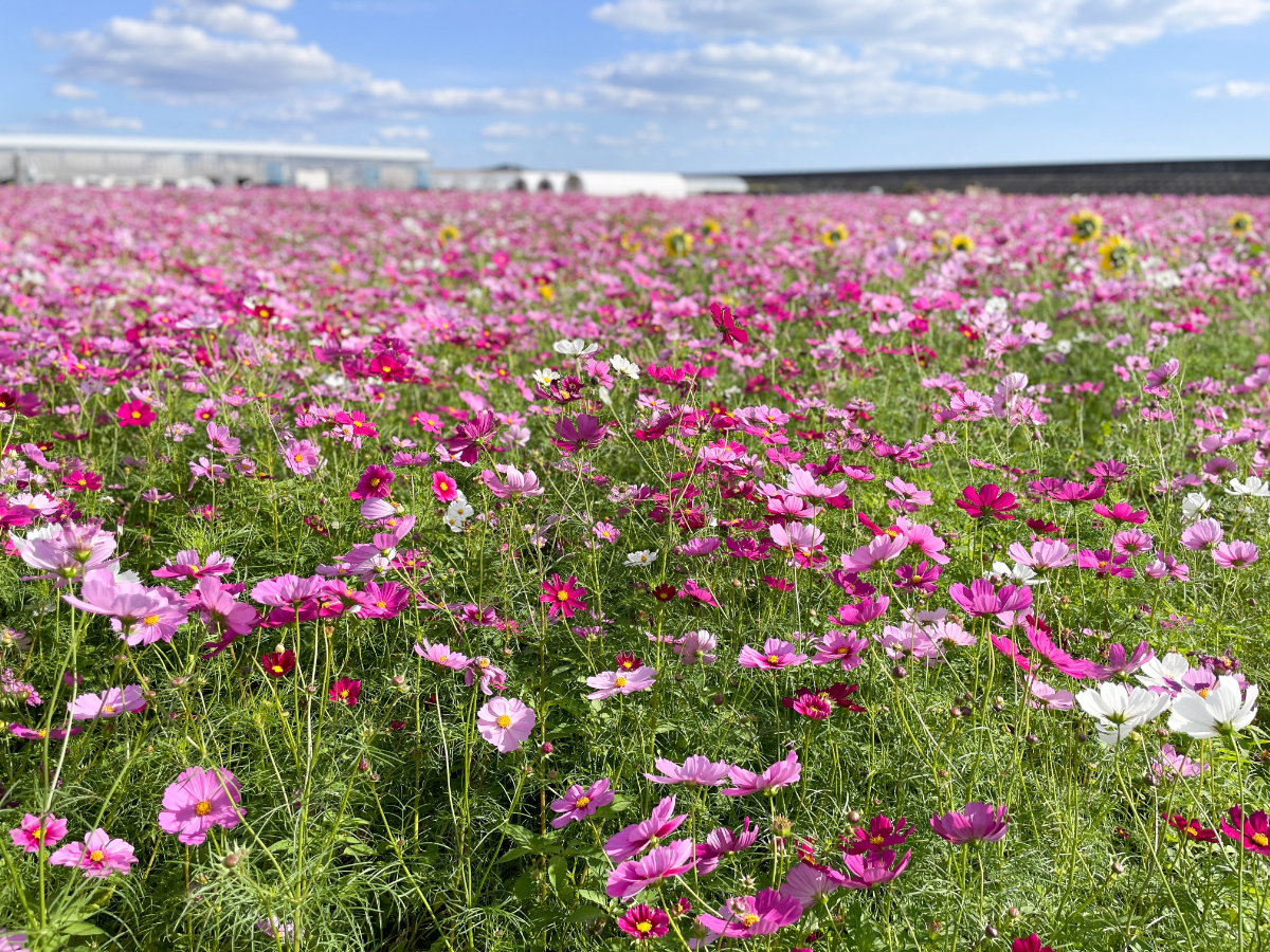 山陽小野田「花の海」で咲き誇るピンクのコスモス